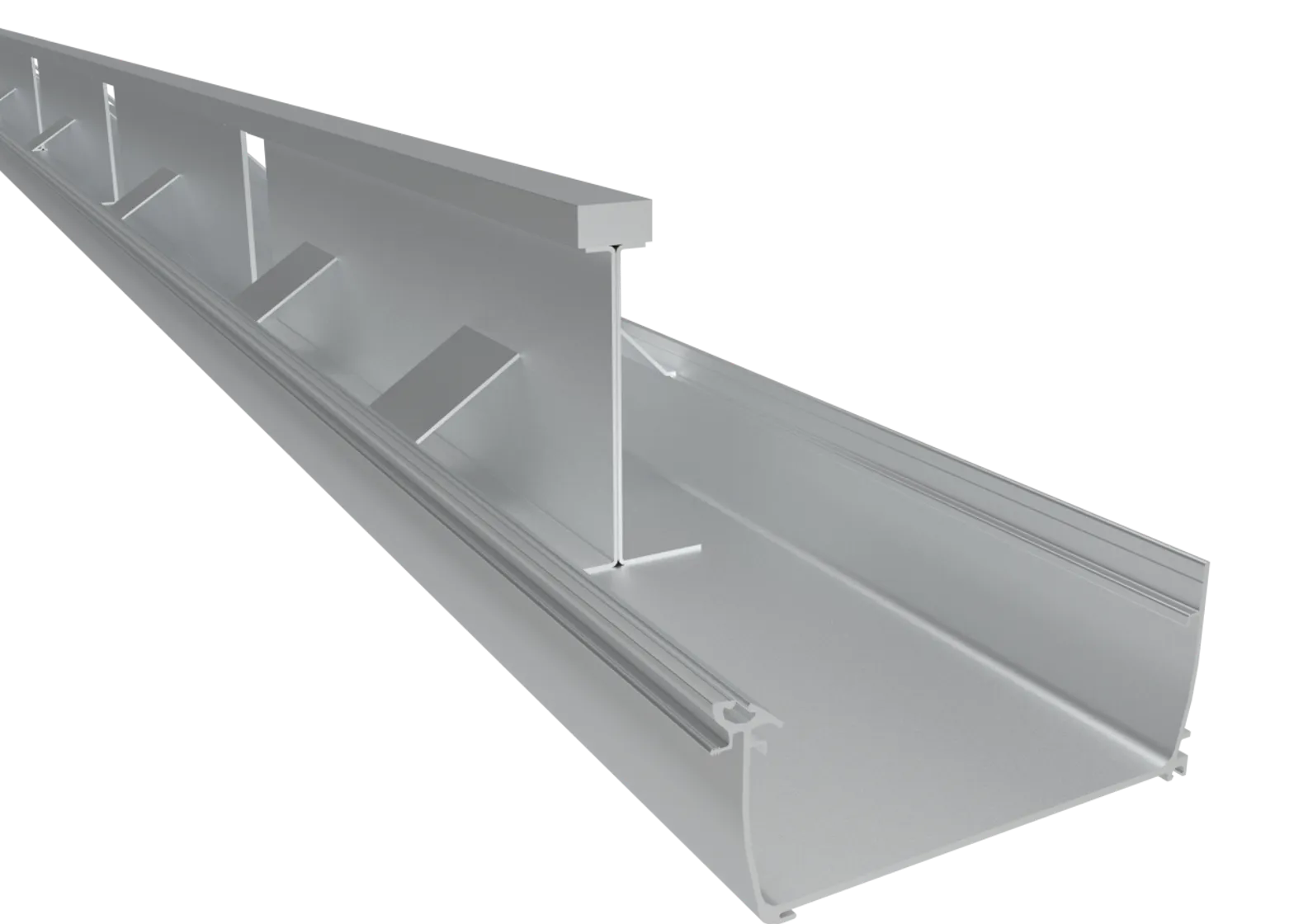 Compatible with all Ultraframe Glass Roofs and Livinroof, the reinforced box gutter must be used with the Ultraframe standard eaves and be supported at either end by hup!, a brick wall or an aluminium post.